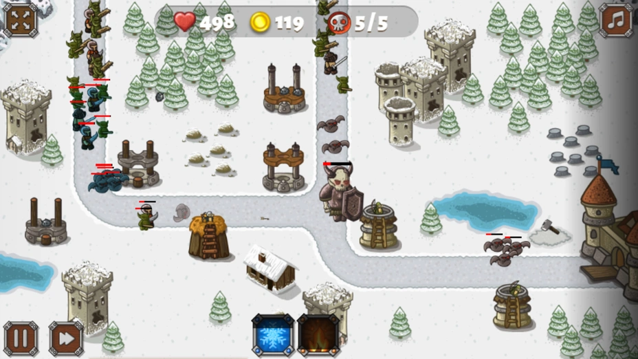 - 🎯 Фокусируйте урон — ставьте самые мощные башни в тех местах, где враги замедляются ледяными башнями.